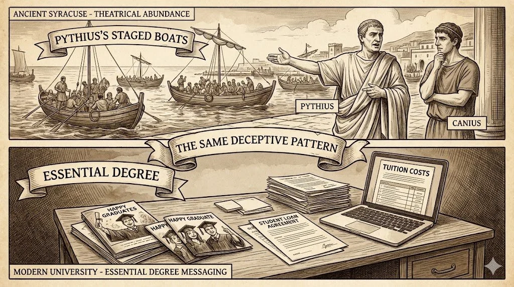 A Roman gentleman named Canius wanted to buy a small estate by the sea. A banker called Pythius owned the perfect property—but business was slow, the harbour was dead, and the place wasn't worth what Pythius wanted for it.