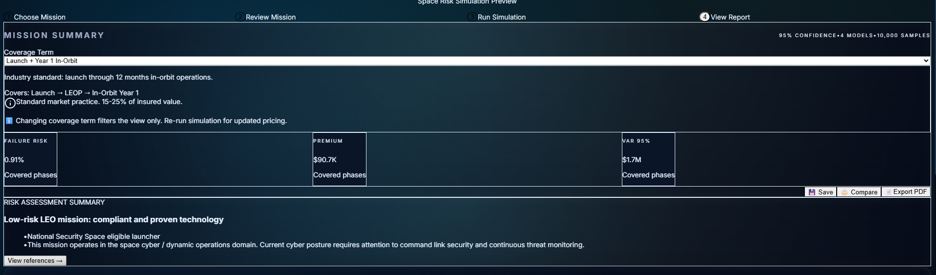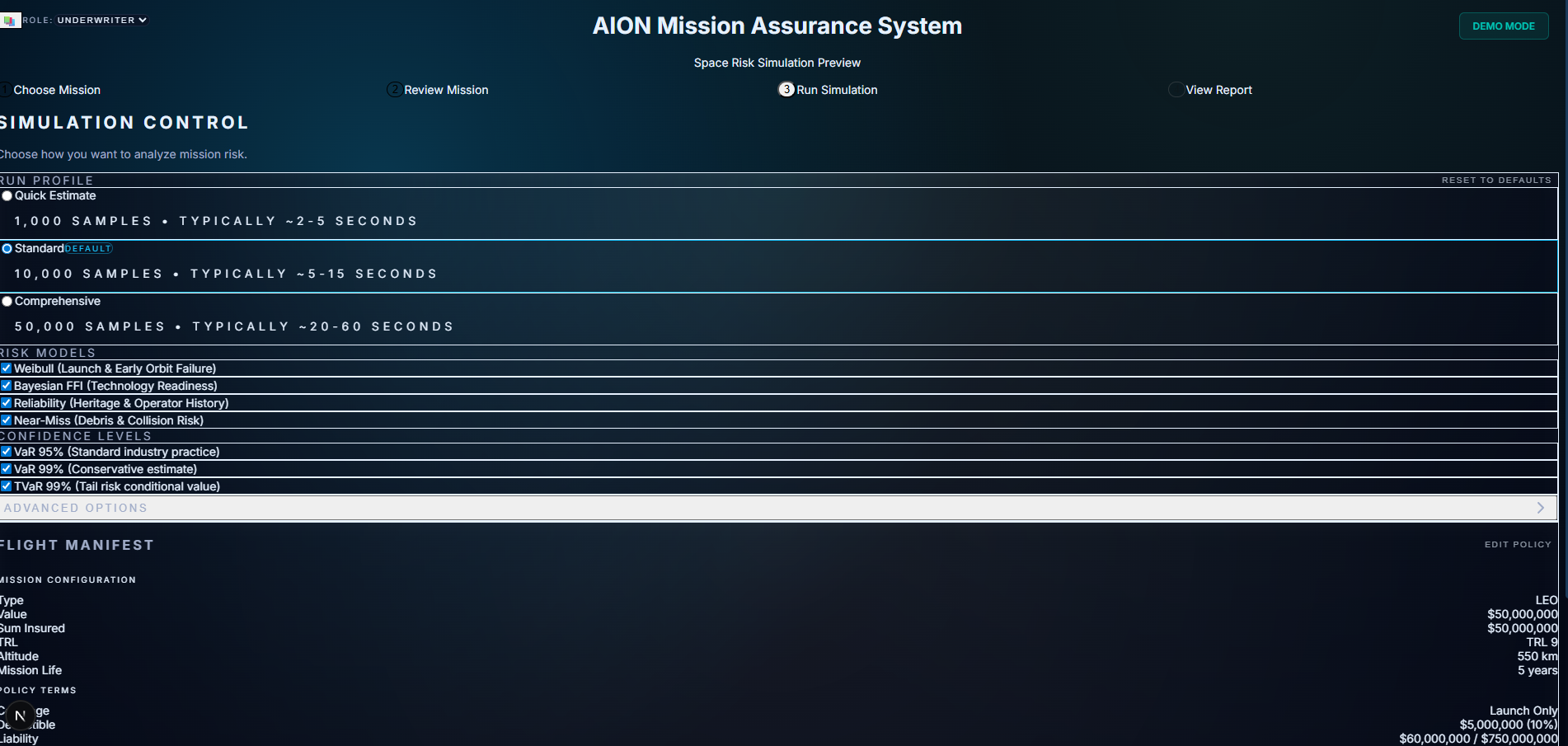 Module 1 gave you numbers. You could configure a mission, run the Monte Carlo model, and get a premium out the other side. It was fast. It was mathematically sound.