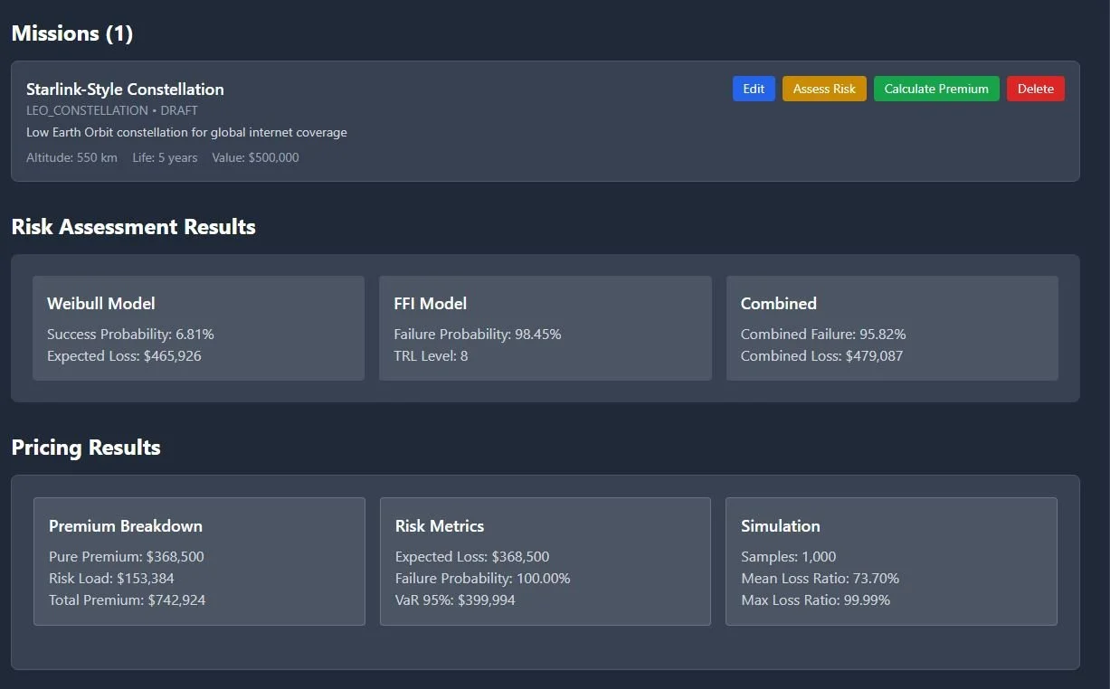 Take a satellite mission, score its risk, price its insurance, and explain why.